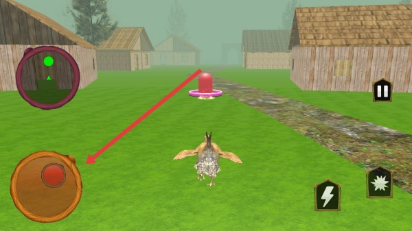 3、进入游戏场景后,可以通过滑动左下角圆形摇杆,控制母鸡移动,前往目标区域完成任务。