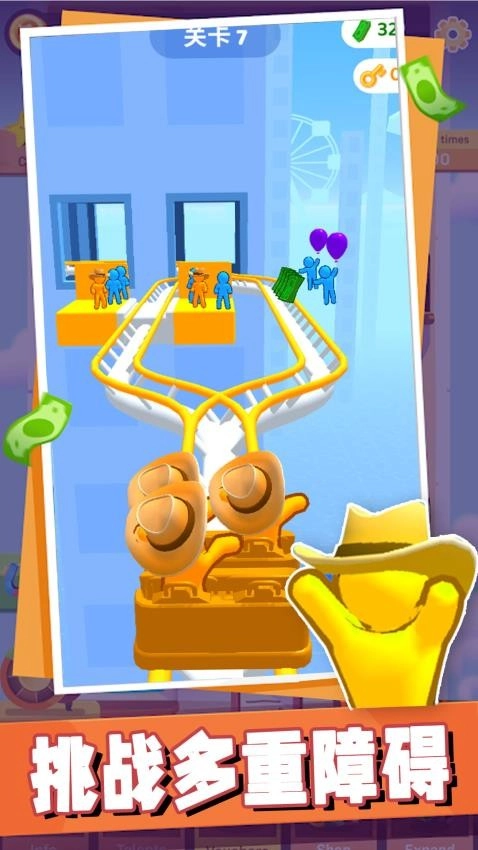 2、精准接人获加成:乘客会从天而降,需提前判断落点调整轨道位置,确保所有乘客安全上车,即可获得高分与额外奖励加成,提升闯关收益。