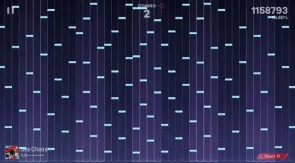3、游玩提示:轨道乱动不用害怕,所有键全部映射到你的屏幕最下方从左到右的4个区域,也就是谱面刚开始的那4条轨道,没明白的话不要紧,记住整首歌你只需要当一个4k游戏打就行,重点是映射,看清楚乱飞的键落在了哪一条乱飞的轨道上。