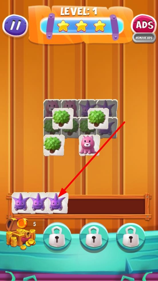 1. 要进入Level1关卡,需认真留意方格内不同图案方块的分布情况。选定目标方块后,长按该方块并拖曳到下方空白栏的相应位置,即可正式启动消除流程。