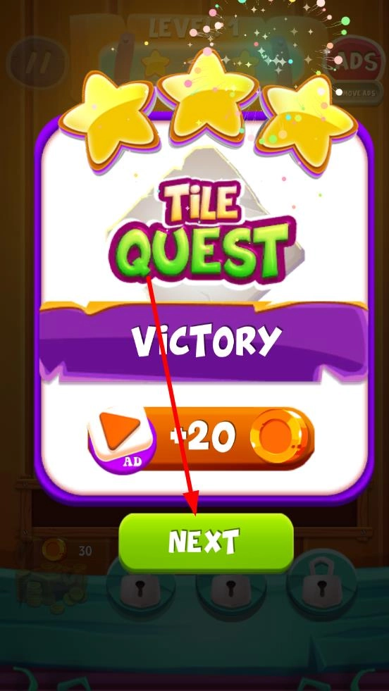 3、成功消除方格内所有可匹配方块,屏幕弹出“VICTORY”通关提示,点击绿色“NEXT”按钮,顺利进入下一关挑战更复杂布局。