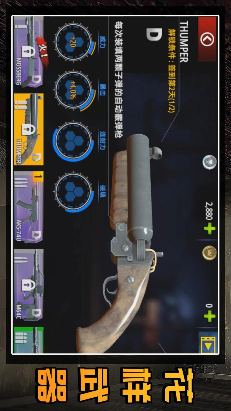 3、完成任务获取资源奖励,升级武器与角色属性,增强战斗力以应对后续更强大的僵尸群和BOSS。