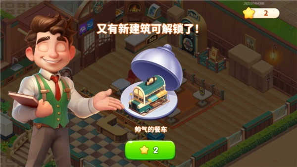 1、点击下方的男孩图案,会出现当前需要解锁的建筑,但是需要闯关获得的星星才行。