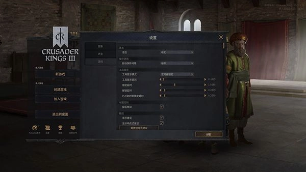 5、重新进入游戏就是简体中文了,我们可以设置游戏的自动保存间隔、工具提示模式等等;
