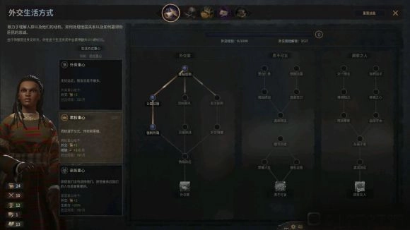 游戏中,由于外交特质有加成,推荐君权重心,目的是为了能够更好的支撑兵士的维护费和对其他酋帮的宣战消耗