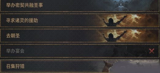 威望在部落制尤为重要,所以打猎开聚会的,在不影响经济的情况下,提议到时间了就开聚会打猎,也能使封臣对你的好感增加,而且旧博里教开聚会加虔诚,聚会也是攒虔诚的一种方式。