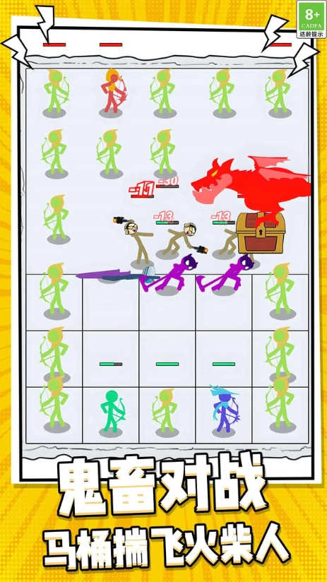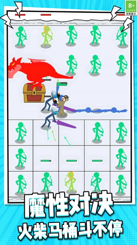 《火柴人无限挑战》,一款玩法别出心裁的策略游戏。在游戏里,你将摇身一变成为军团指挥官,带领着特色各异的火柴人兵种,开启一场又一场既烧脑又让人欲罢不能的策略较量!游戏创新性地采用方格战场设计,深度融合了兵种相克、地形运用以及技能搭配等策略要素。不管你是偏好休闲对战的玩家,还是执着于极致策略的硬核玩家,都能在这款游戏中寻觅到契合自己的战斗节奏。看似简单易上手的操作,背后实则暗藏着无尽的策略变数,每一场对战都是一次全新的脑力风暴!