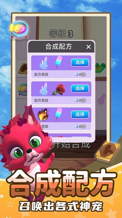 《魔法奇遇记》堪称一款趣味性十足的休闲游戏。游戏里汇聚了众多萌态可掬的神宠动物,你能够借助合成配方,获取全新的神宠种类,领略魔法的神奇力量,还有各类合成元素等待你去探索解锁。
