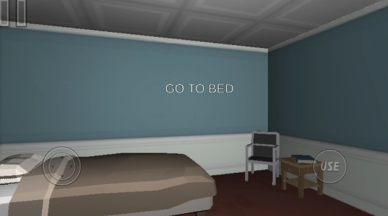4、最后再回到卧室,对准床点击【USE】互动,躺下后睡觉,迎接即将发生的剧情(根据问题回答YES或NO即可)
