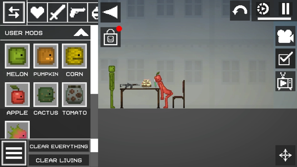 1、在本站完成甜瓜游乐场29.5国际版的安装后进入游戏,来到游戏界面,把武器拖到角色下方。