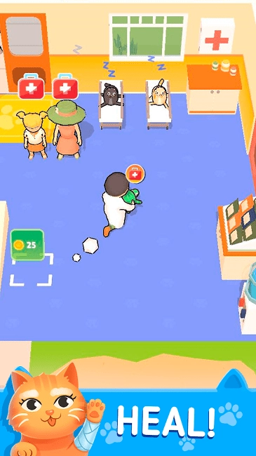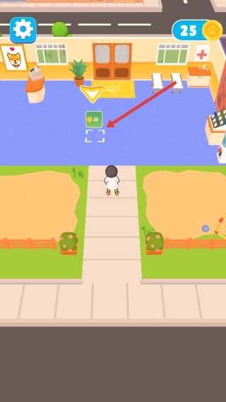 1. 来到游戏界面,控制角色朝着标有25金币的区域行进,点击收取初始资金,此乃开启医院经营的关键步骤。