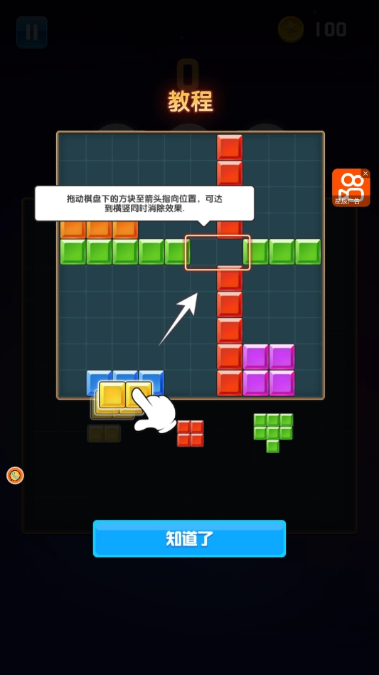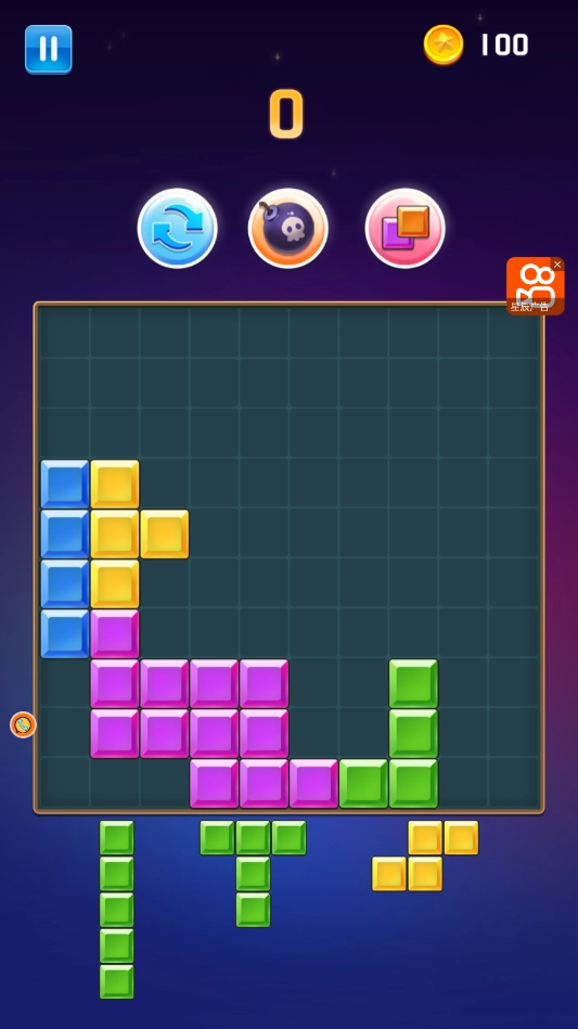 2.与传统俄罗斯方块不同,本作的消除条件更加灵活,只要填满任意一行或一列,即可触发消除,腾出更多空间。