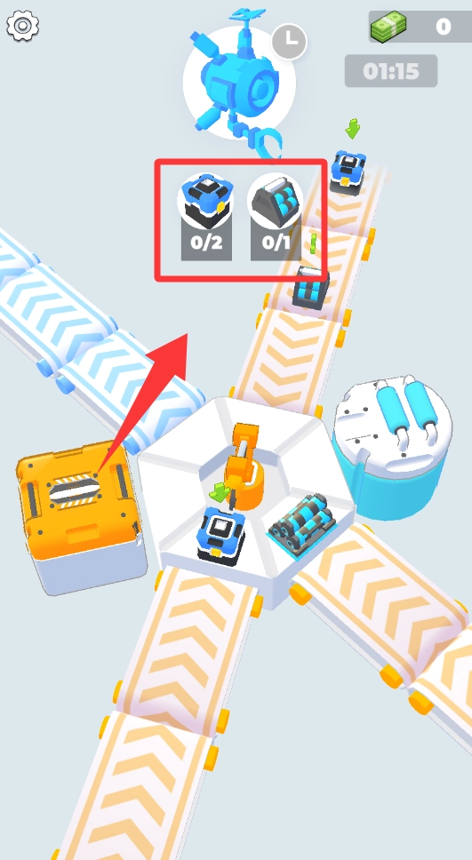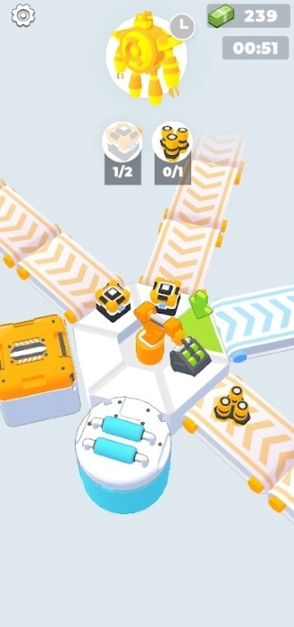 4、根据任务要求从传动带上抓取零件,精准放置到组装区域,完成成品后获得奖励,解锁更多有趣的关卡内容。