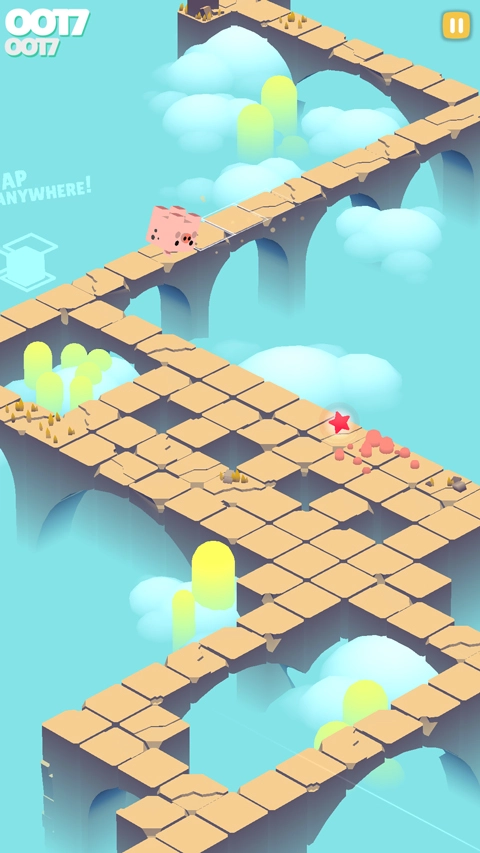 4、通过点击屏幕控制转向,避免掉落悬崖。