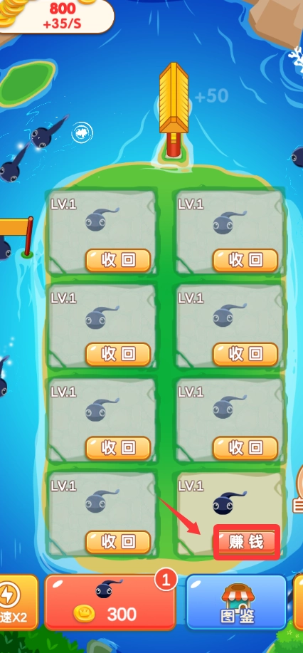 3、放满那些小蝌蚪,每转一圈就会有金币的。