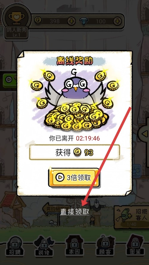 2.游戏界面中领取奖励即可获得93金币。