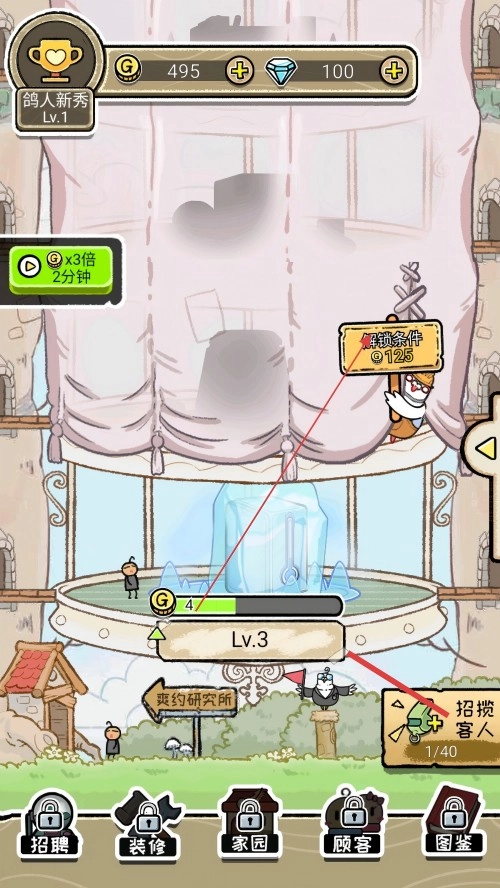 3.游戏下方的招揽客人可以增加人流量。