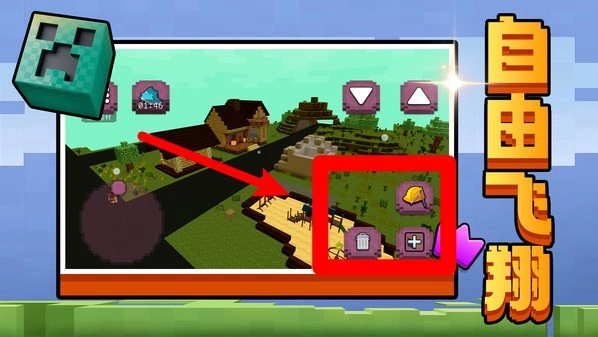 2.屏幕右下角的功能按键可以开启自由飞翔模式,让玩家在空中查看建筑和环境,获得全景视角。
