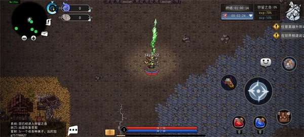 3、进入游戏后,左边控制角色的移动,而右边则是攻击、背包等按钮;