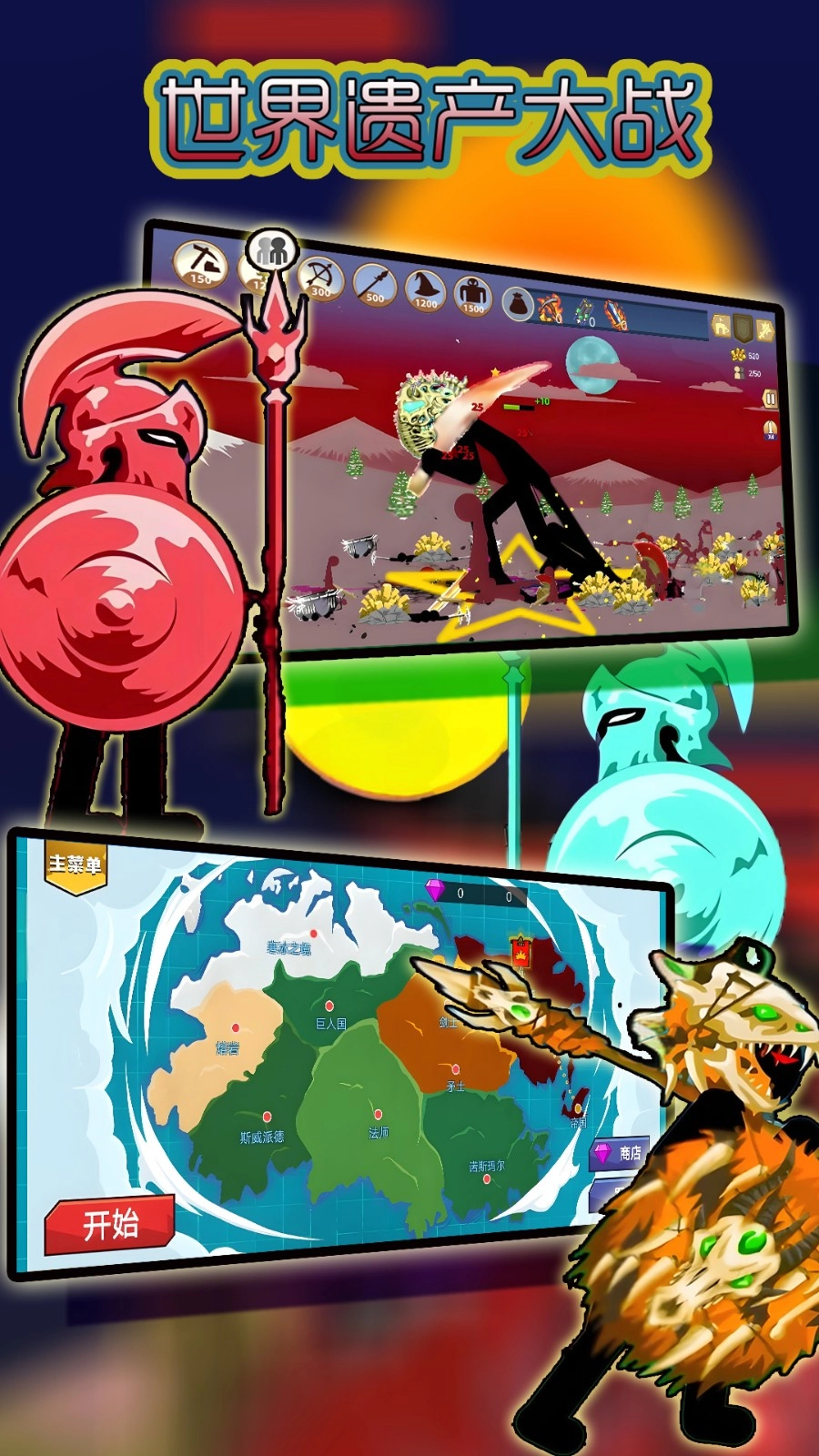 《世界遗产大战》是一款策略战争游戏,核心玩法围绕火柴人军团展开。玩家会身处架空历史设定的文明冲突时期,统领由剑士、弓箭手、法师等各具特色兵种构成的部队。通过巧妙的战术搭配以及合理的资源管理,在攻城掠地的过程中,竞相争夺世界遗产的归属权。该游戏表面采用诙谐的火柴人画风,但其内核却融入了深度策略与实时战斗机制,开创出轻量化战争模拟的全新玩法。