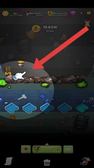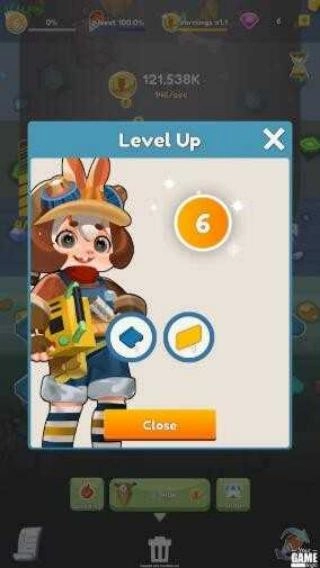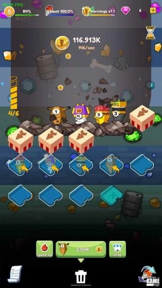 3、持续用钻头挖掘岩石,收集金币与资源,积累到一定程度,金币收益会逐步提升。