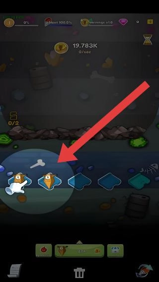 1. 按照提示,在界面里拖曳两个一模一样的钻头,使其合成为更高级的钻头,以此增强挖掘工具的性能。