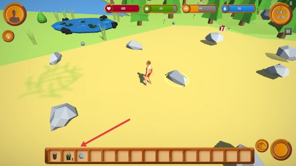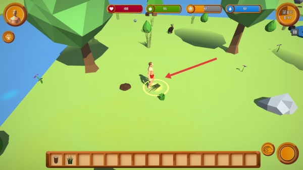 1. 在场景里移动角色,当靠近诸如地上植物这类可互动物品时,点击就能采集,采集到的物品会被存放在下方的物品栏当中。