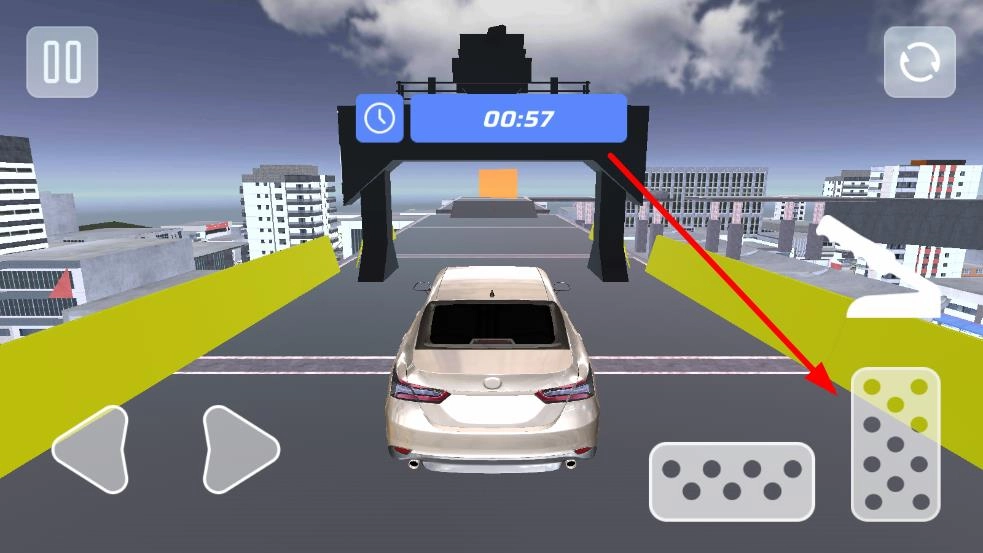 2、进入场景,选择第一关开始挑战,利用按键方向、油门、刹车等操控车辆前行或转弯,按任务指引规划路线,完成驾驶目标。