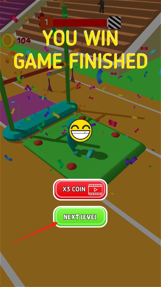 3、获胜后点击NEXT-LEVEL,进入下一关,继续挑战更高难度的跑酷任务,点击下一关。
