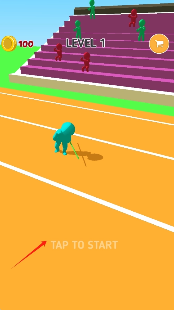 2、看到LEVEL-1界面,点击TAP-TO-START,开启关卡挑战,操控角色开启跑酷,滑动移动人物。