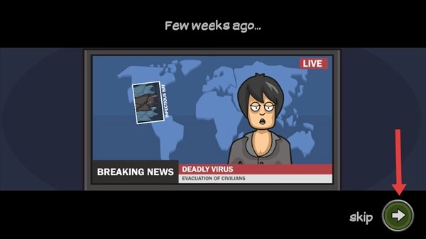 1. 启动游戏,开场会呈现新闻剧情,点击【skip】按钮进行跳过,便可迅速进入游戏实际操作阶段。