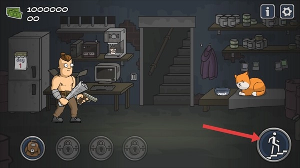 2、进入地下基地场景,点击右下角人物上楼梯的图标,操控角色前往地面关卡战斗。