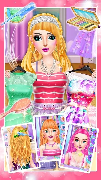 2、多样化的美发工具与饰品,支持染发渐变、卷发拉直等多种发型变化效果;