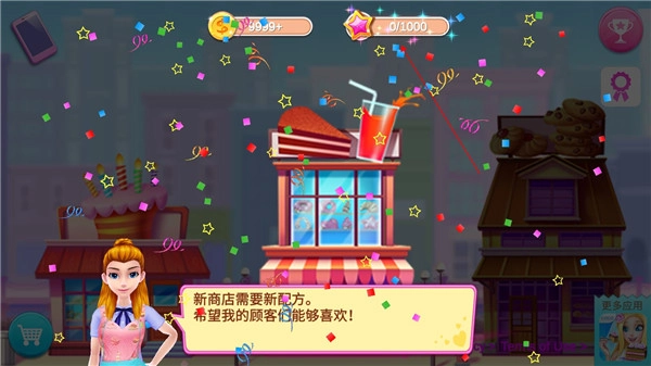 1、你将爱上这款令人胃口大开的蛋糕店故事类游戏!帮助丽兹开设一家又一家的蛋糕店!甜品店越多越好!纸杯蛋糕肯定也是越多越好。