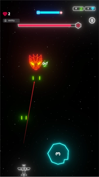 霓虹之翼版是该游戏的一个版本,在此版本里,为玩家剔除了广告,玩家无需观看广告就能直接获取奖励。这是一款飞行射击类游戏,玩家在游戏中会置身于一个绚丽的霓虹世界,每次点击都会呈现出绚烂的爆炸效果。玩家要在持续变化的关卡里挑战自我,躲避飞来的障碍物,还能定制个性化的技能组合,助力自己更好地前行。
