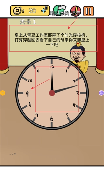 3、认真查看题目,按照要求穿越回过去,所以将时针逆时针旋转即可。