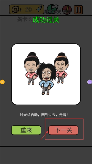 4、顺利通过当前关卡后,点击【下一关】选项,就能接着开启下一轮闯关。