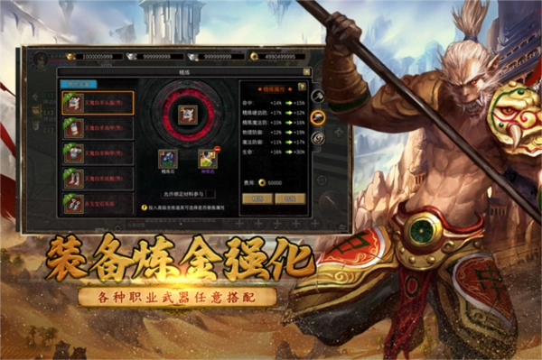 可以进行装备强化,每个职业武器都可以进行搭配。