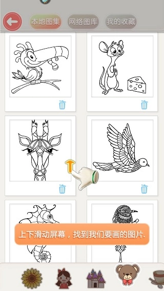 上下滑动屏幕,找到我们要画的图片,找到之后,点击图片便可开始作画。