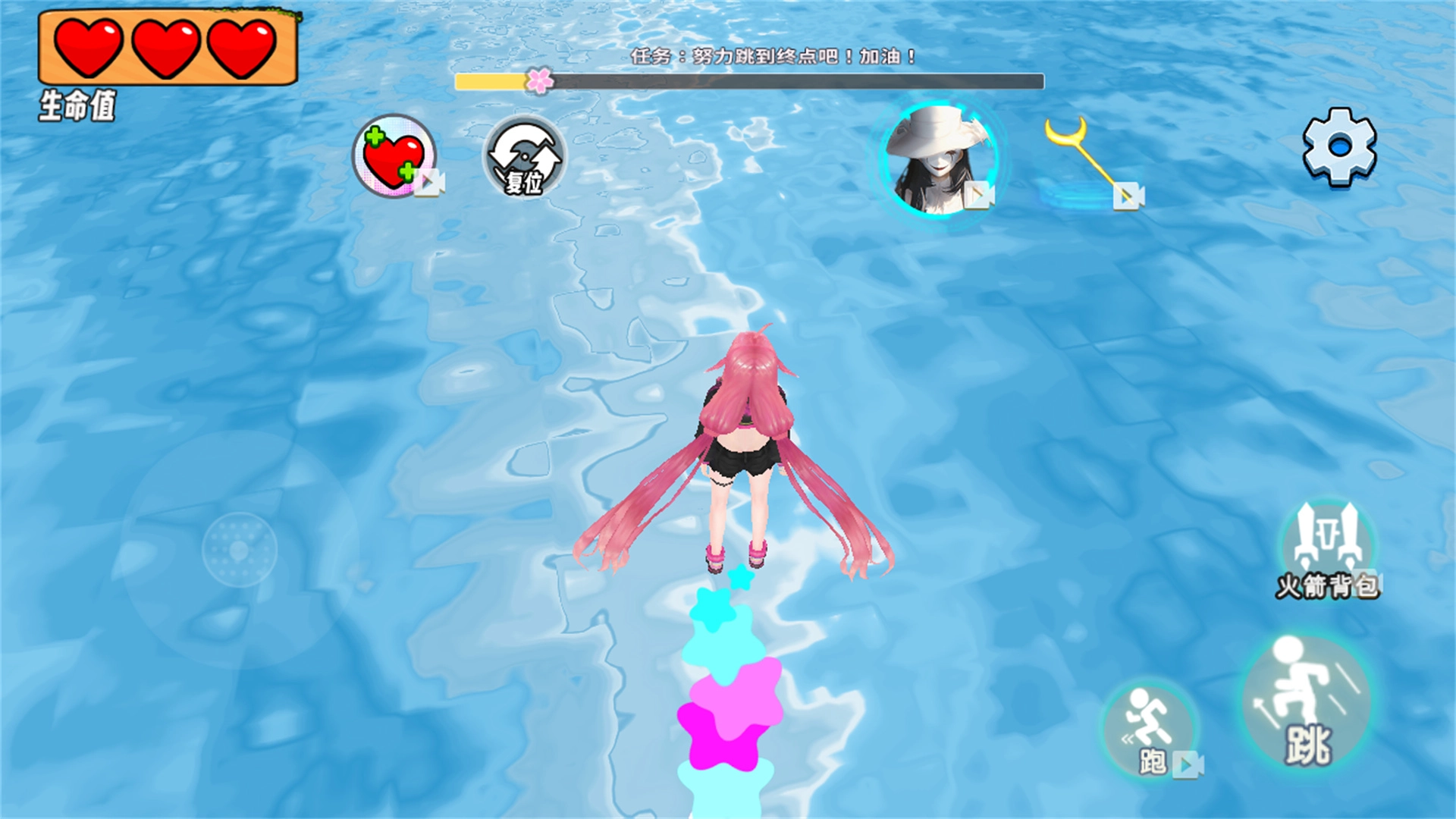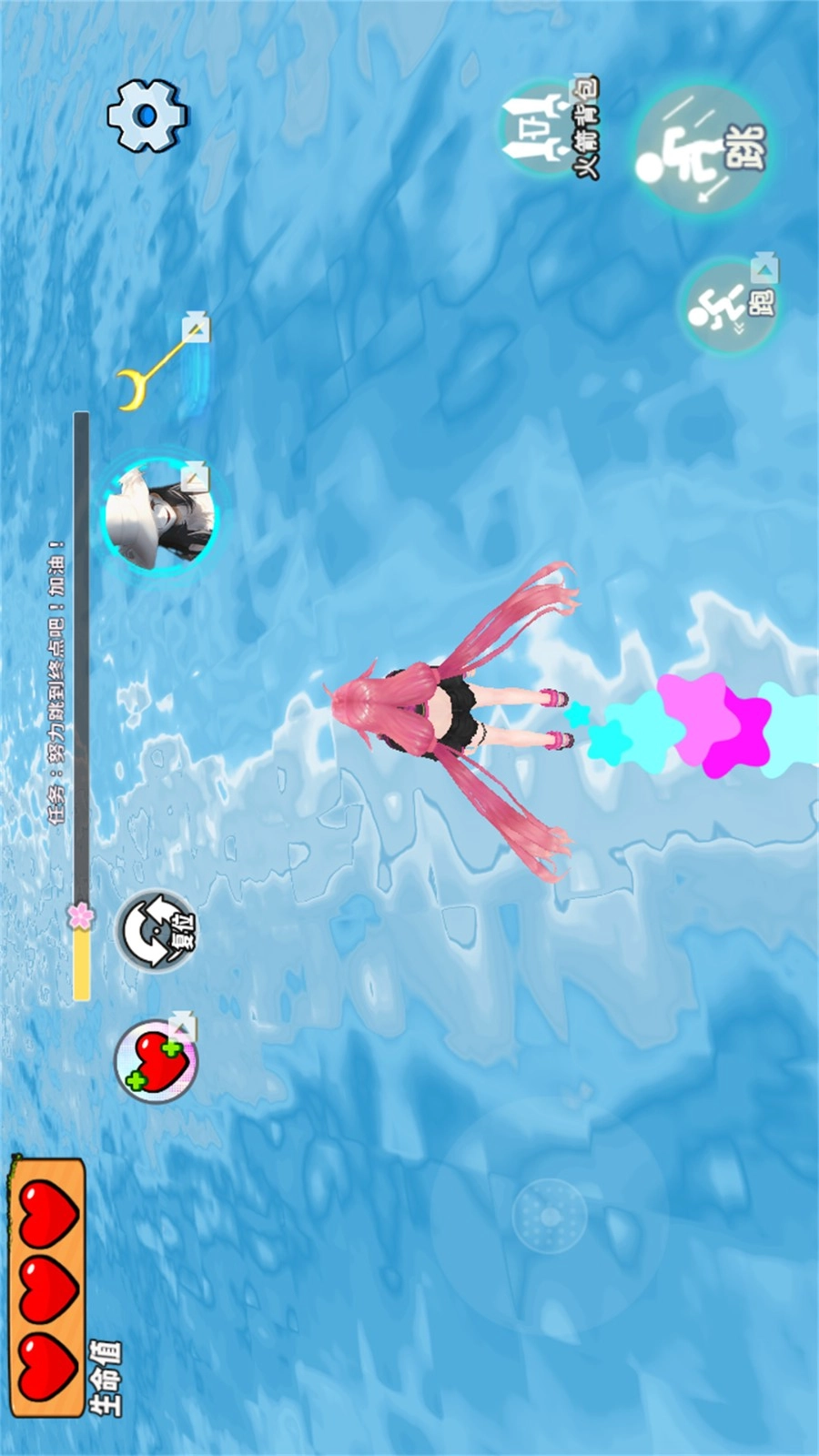 3、一边跑一边完成任务,能解锁超多漂亮小裙子、新发型,还能学到加速跑、二段跳这些酷炫技能。