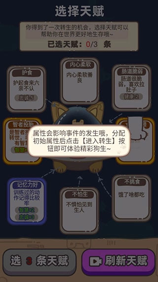 2、这款游戏的玩法跟人生重启模拟器一样,只不过主角换成了一条狗,内容也有所不同。