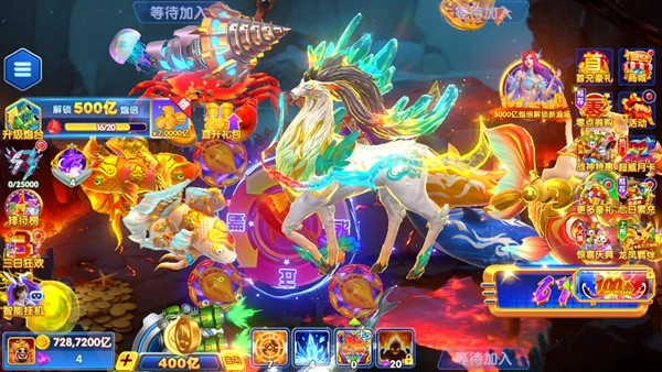 超高万亿炮倍,满屏爆金带您沉浸式捕鱼,华丽特效全程高能,让您劲爽过瘾,燃爆深海!