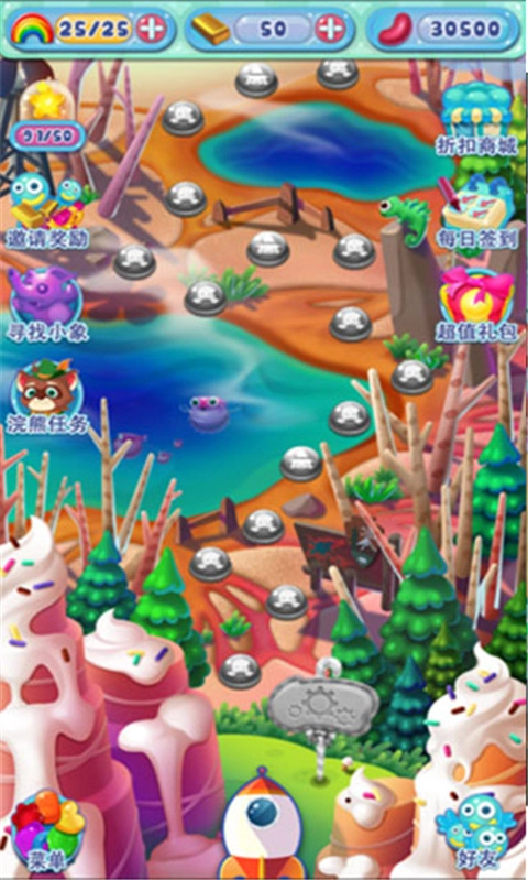 都说休闲游戏内容单薄,在糖果萌萌消里可不是这样哟!除了普通的闯关模式外,游戏里还加入了蓝宝星球和挑战关卡两种模式,多条路线,一样精彩!另外,不断更新的节日活动更是妙趣横生,要你好“玩”!