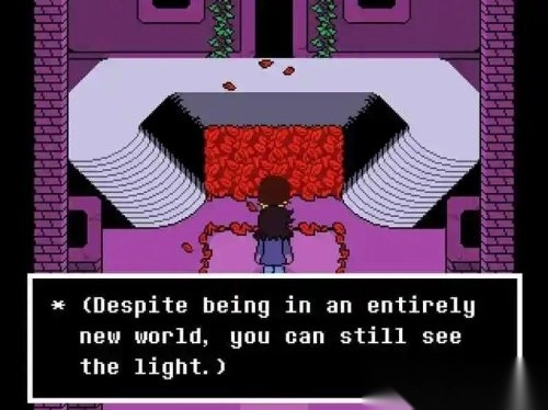 从跌落的地点往右侧的门走去,内进后会遇到一朵花,他就名叫做花儿,他知道你刚来到地下一切都很困惑,所以他打算把这里人的生活告诉你。并且向你讲解心形的作用。