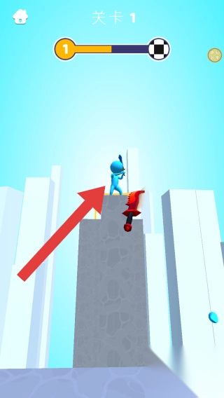 1. 实体信息包含“关卡1”,画面里可看见红色角色与蓝色角色,画面上方存在进度条、能量图标等元素,下方设有操作指引(以手指图标呈现),背景为具有城市与日式建筑风格的场景。