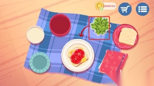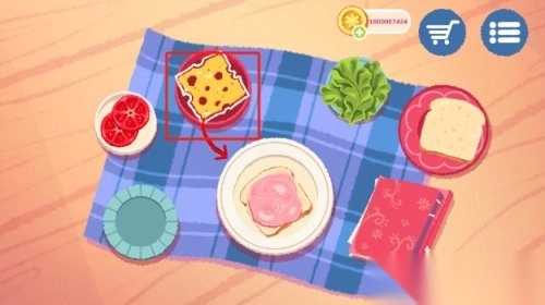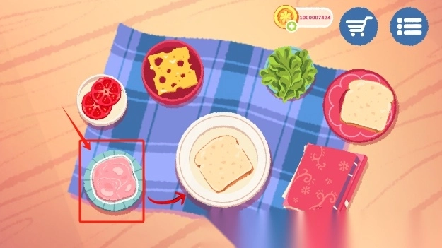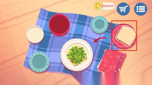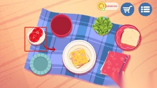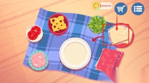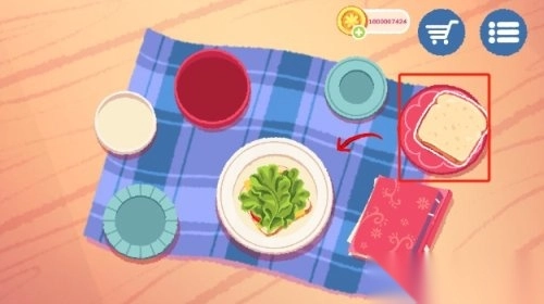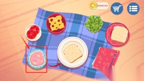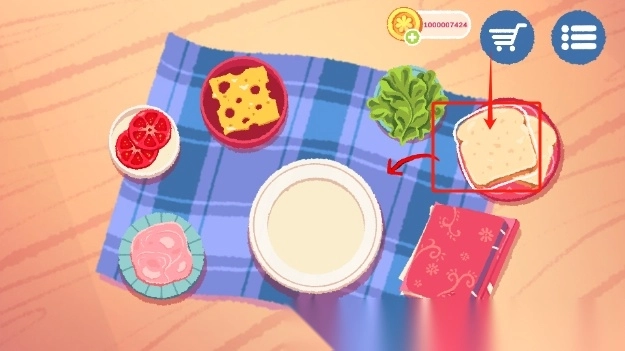 1. 开启游戏后,我们点击面包片并放置到这个盘子中。