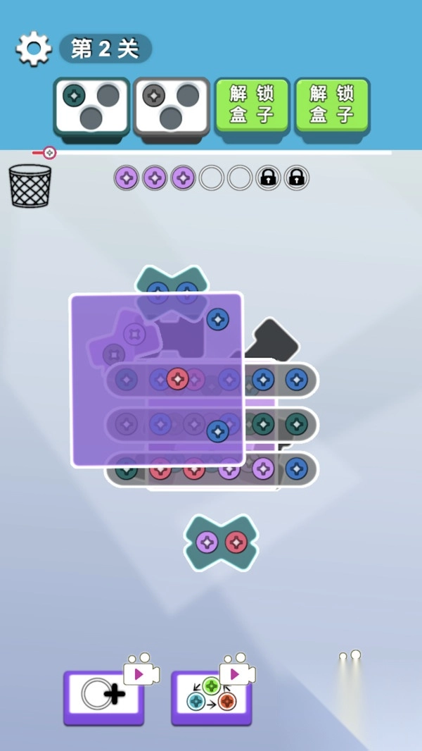 3、小清新的游戏画风,每一次的螺丝简单轻松的移动组合起来很趣味。