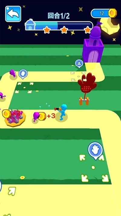 2、两个相同等级的炮台可以进行合并升级;