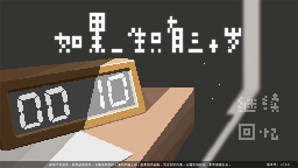 在《如果一生只有三十岁》这款游戏里,玩家将开启一段仅有三十年的短暂人生之旅,思索怎样才能让这有限的人生过得无怨无悔。每位玩家都能挑选自己心仪的人生轨迹,而每一次选择,都会衍生出截然不同的结果。当生命迈向终点,回首这三十年的种种经历,你会收获无尽的触动与深刻的反思。