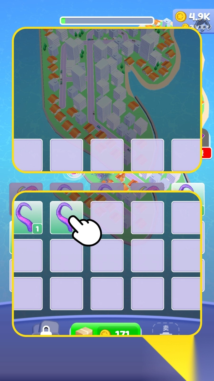 1. 玩家把怪物卡片进行合成,接着将合成后的卡片放置于城市地图之上,借由破坏城市这一方式推动游戏进程,从而感受与众不同的破坏体验。
